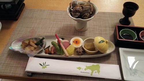 小豆島の食材を使用した会席料理です。海の幸が豊富ですので、魚介類が苦手な方は大変かもしれませんね。味に関しては美味しいと思います。