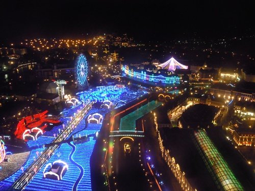 観覧車や塔からイルミネーションを楽しむことができます。今回は観覧車に乗ってみました。ガラスが汚れていたのであまりクリアではありませんが、雰囲気はわかるかと思います。
